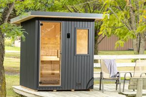 Only 24' square feet of surface area needed for this NorthStar outdoor sauna. This ready to order and install sauna is authentically Finnish and ready to welcome you in.