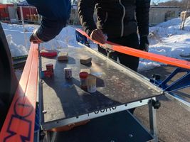 Binder applied to pre-marked kick zone. If you don't have a kick zone marked, ask to have your clean skis tested on our fitting boards.